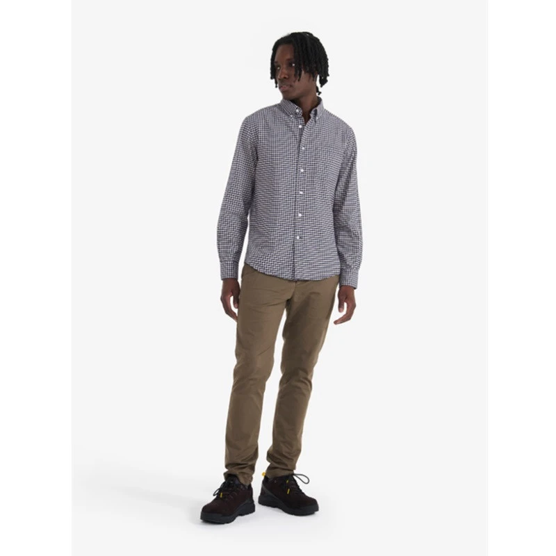 Sa poche poitrine plaquée ultra discrète située sur le côté gauche ajoute une note pratique, tout en renforçant le charme authentique de la chemise. La fermeture par boutons effet nacre, siglés pour une finition soignée, témoigne de l’attention portée aux détails, propre à la maison Aigle.