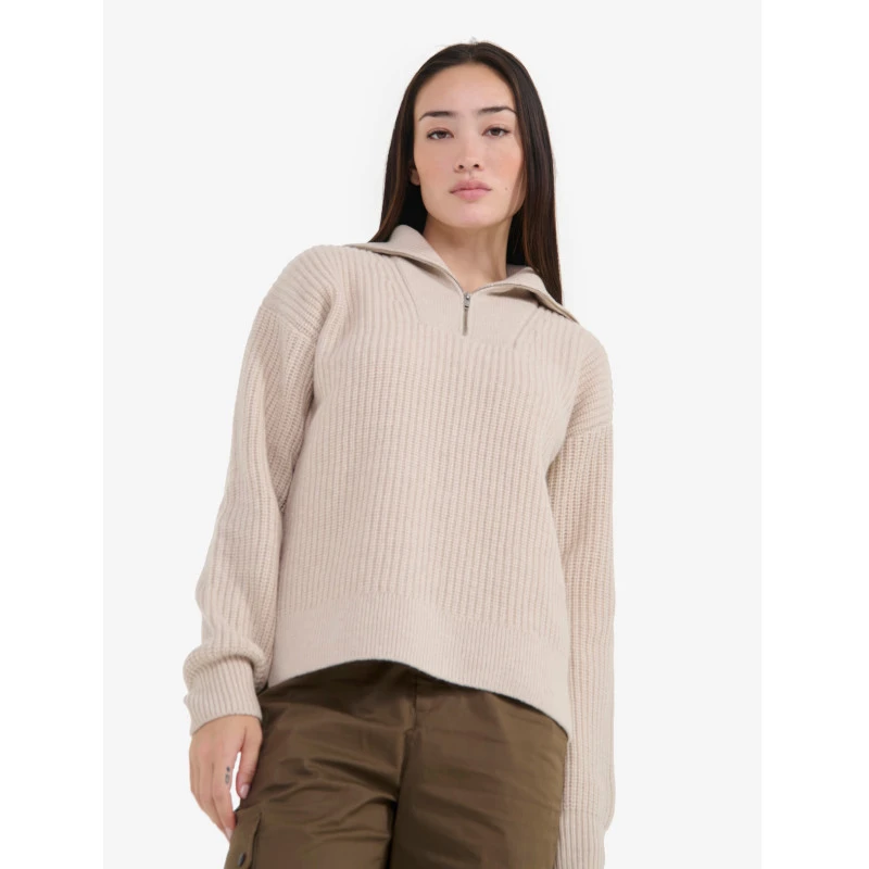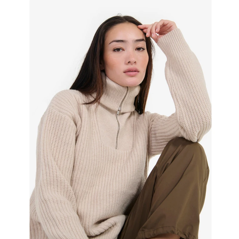 Réalisé à partir d’un mélange de laine chaude dans une maille torsadée généreuse, ce pull combine chaleur et confort, idéal pour être porté sur un jean ou sous une parka tout au long de l’hiver. Son col montant zippé à double épaisseur ajoute une protection optimale contre les intempéries en protégeant entièrement votre cou.